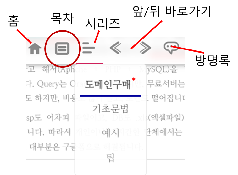 처음 공부시작했을 때, header의 역할에 충실해야 한다는 생각에 최대한 많은 내용을 때려박아(?)보려했다. 그러다 보니 애매한 목차 아이콘이 등장했다. 심지어 제작자인 나도 목차를 띄우려고 시리즈아이콘을 클릭하는 실수를 할 정도.