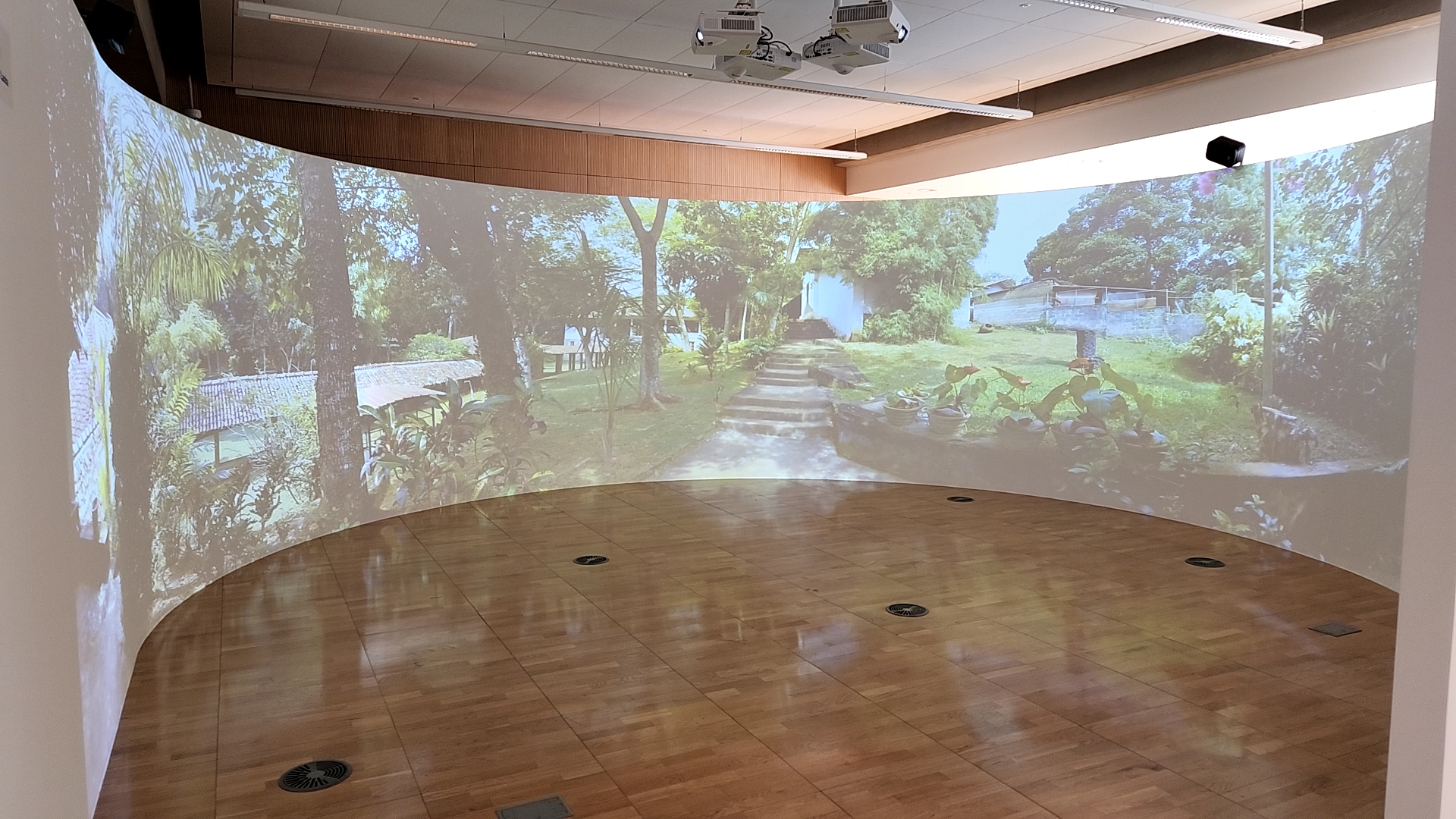 주제는 지구이지만 딱히 와 닿는 내용은 없다. 오히려 "프로젝터 콘테스트"라고 하는 것이 더 맞을 지도... 아래 사진은 다른 전시실의 사진인데 빔 3개를 연결해서 270도를 구현했다. (갖고싶다.) 다가가서 자세히 보면 접점이 보이는데, 어지간히 떨어져서는 어느 부분이 접합부분인지 확인하기 어렵다. 이번 전시는 위와같은 정교한 프로젝터 공연을 관람할 수 있다. 프로젝터 공연인만큼 실내가 매우 어두운 편이다.
