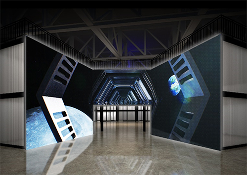 Imaginary Portal 상상원 입구에 조성된 17×7m 규모의 대형 LED 게이트에서 <지구의 시간>展으로의 몰입을 이끄는 아나몰픽 영상을 감상한다. 일상과 구분되는 경계이자, 세계를 하나로 연결하는 동굴
