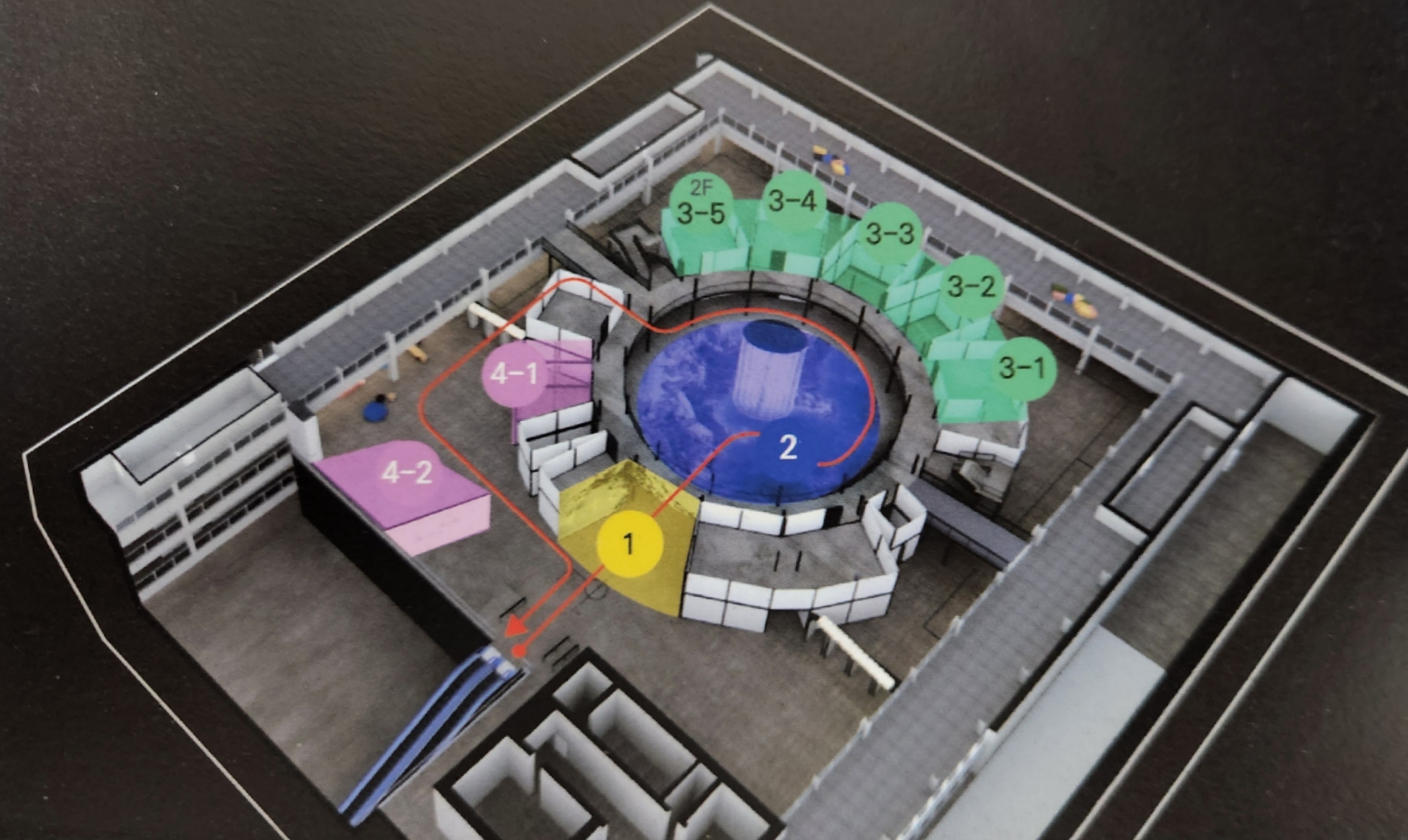 2022.7.1 ~ 2022.11.6 까지 예매 없이 현장에서 무료 입장이 가능하다. 전시물 구성은 아래와 같은데, 4-1은 2층에 있어서, 계단을 올라가야 한다. 2층에서는 2번에서 놀고 있는 사람들을 구경할 수 있다.