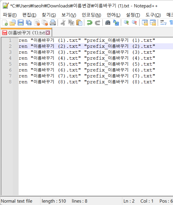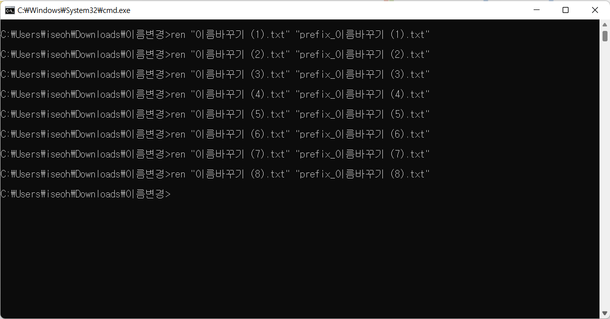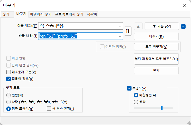 - 해석 : ren "찾은내용" "prefix_찾은내용"