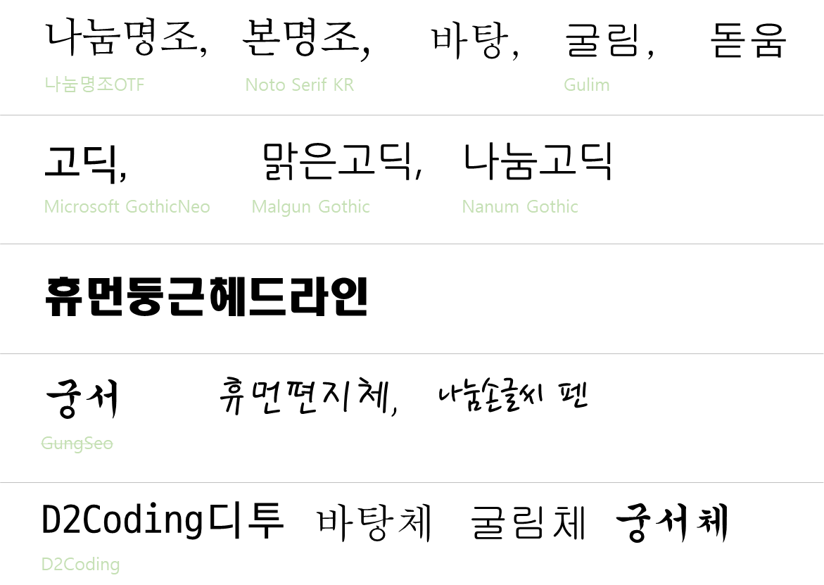 명조, 바탕, 굴림, 고딕 어떤 폰트를 써야 하는지 헷갈리는게 있어서 정리해보았습니다.